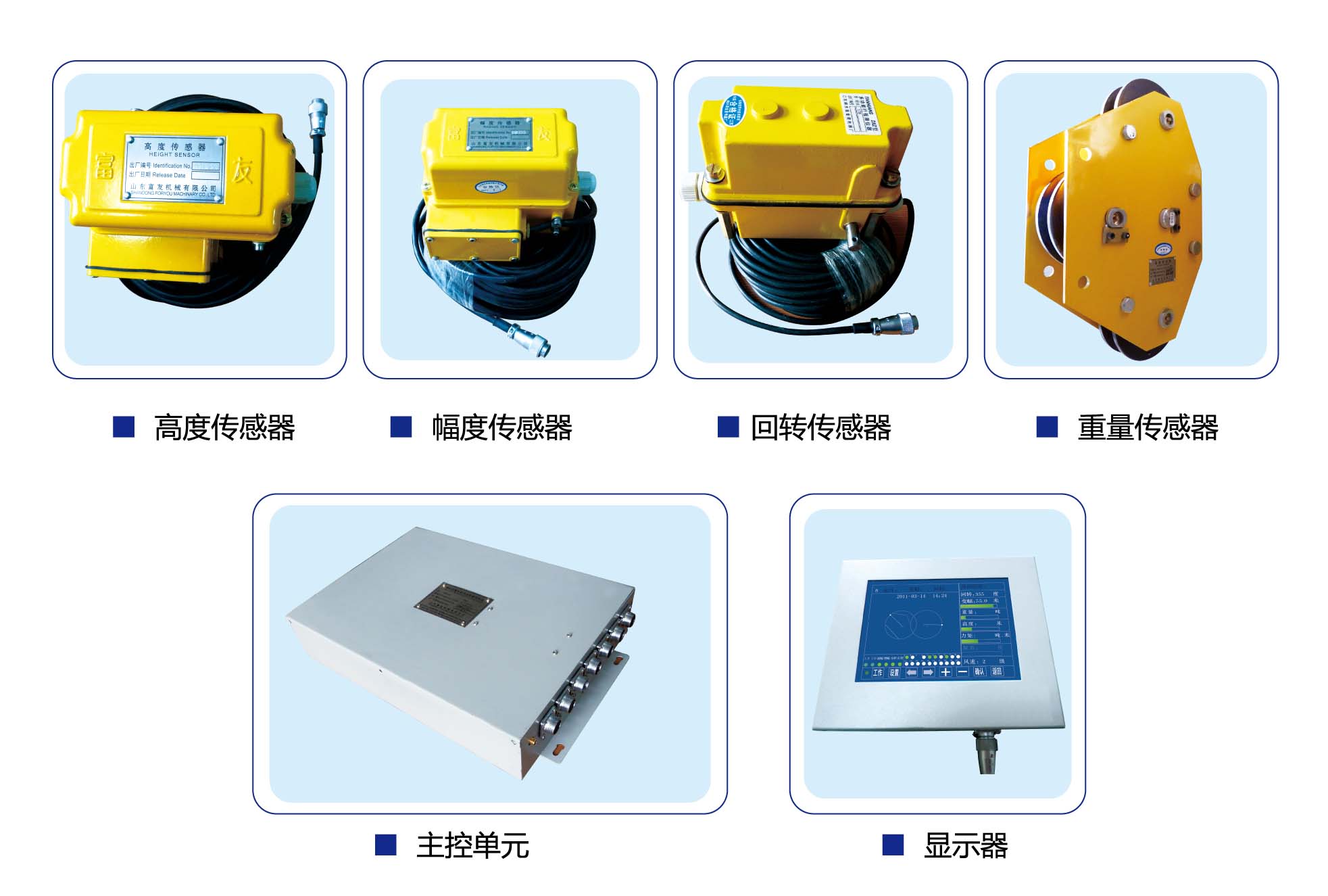 1、具有塔机安全监控管理系统(塔机黑匣子)五限位产品的全部功能,包括“幅度、重量、力矩、高度、回转” 指标的显示、记录、报警功能等,即采集吊车的起重量、当前额重、小车行程等数据,并显示报警和控制。